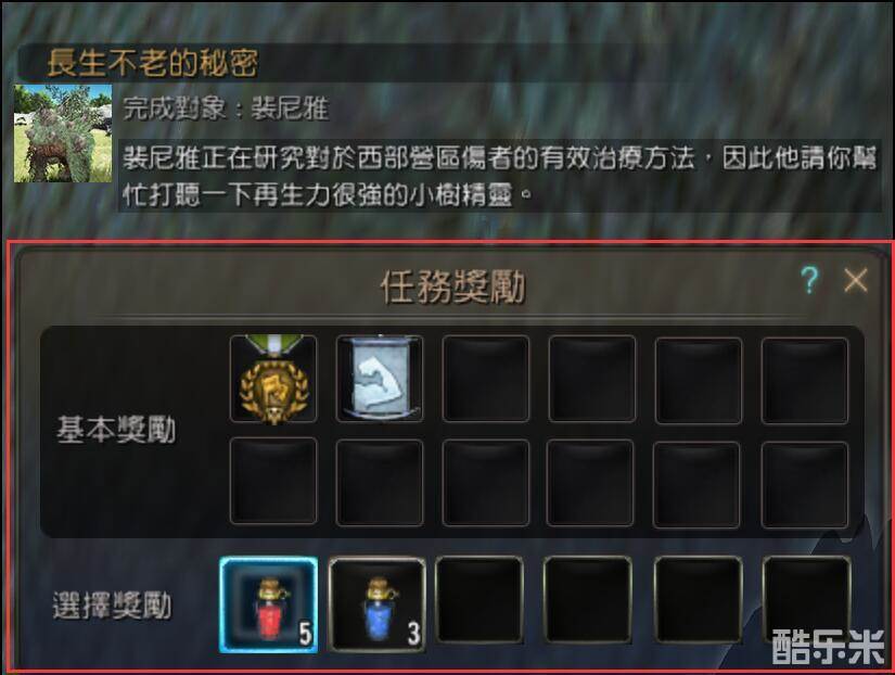 任务奖励中的「选择奖励」,必须从多个奖励道具中择一。