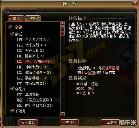 7. [尊]VIP任务 :需要充值或者VIP才能完成的奖励丰富的任务;