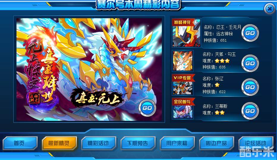 登录赛尔号,点击左上角的航行日志,选择最新精灵里面的真龙·无上活动。