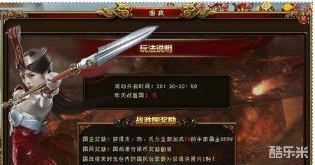 当然,你要是真想去游戏做上这个“国王”,那以下这些你必需先知道:每天7:30分时国家战力最高的那个玩家将分为国王。国战每天开放时间为20点30分,玩家通过点击主界面的"国战“按钮进入界面,出现在眼前的是一张大地图,所有参战的玩家都在本方阵营所属的区域集合,通过击败其他阵营的对手占领更多的城池来获得胜利。国战活动时间为20分钟,活动结束时占领龙柱的胜利方。胜利方国家所有国民都会获得一份国战奖励,战胜国的“国王”获得“中原霸主“特权buff——攻击、防御、兵力5%的加成。