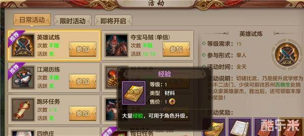 英雄试炼依然是每天的重要玩法,每日都会重置一次进度。可以用铜币扫荡至之前挑战的最高关卡。挑战BOSS的话,要多理解职业的技能,注意走位和BOSS的攻击频率以及技能释放,多利用坐骑来进行拉扯,珍兽吸引到仇恨时,是很好的输出机会。挑战BOSS时,都是有三分钟的挑战时间,要善于计算和利用。当然战斗力依然是挑战英雄试炼的关键。