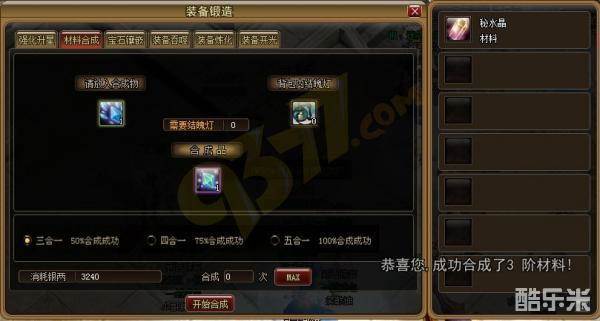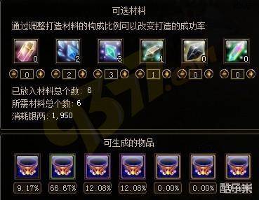 根据装备等级,每种装备所需要的材料数量不同;投入的材料阶数越高,获得高品质装备的几率越高;不同阶数的材料可以混合使用。