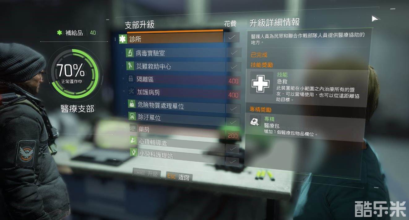 这边先讲技能,我图中已经完成了诊所这个设施