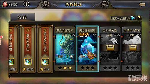 在历程模式中,玩家可以收获大量黄金、经验丹和各种稀有素材,通常来说,这些关卡需要打上两次。第一次是玩家冲级的时候,等级一到就来挑战这些关卡,这时候通常都很有挑战性,迅速通过这些挂起能够让玩家的等级和资源领先。