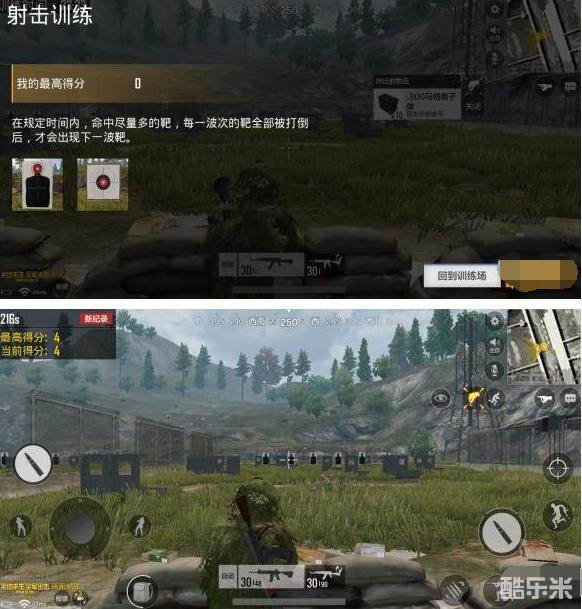 站在准备区点击开始训练,前方靶区就会依次出现多个不同距离的靶牌任你射击,同时根据命中数记录你的成绩。