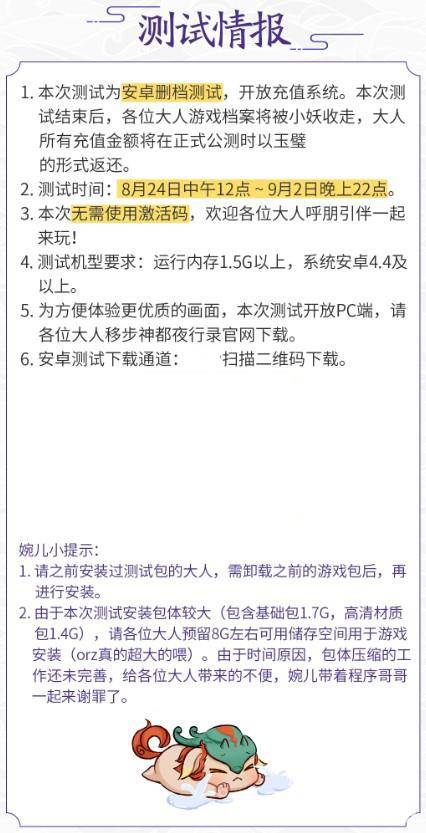 《神都夜行录》是网易首款国风妖灵养成RPG手游,采用中国传统志怪题材,以古韵盛唐为背景,讲述了在人与妖对立、共存、又互相包容的年代,作为降妖师的玩家行走于阴阳两界,遍览盛唐风志,阅读山海异闻,降妖除魔,经历了许多跌宕起伏的妖灵传奇。游戏本次计费测试针对安卓设备,有诸多测试基本信息需要各位提前牢记,下面先睹为快!
