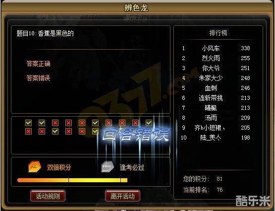 3、 答题错误或放弃作答不得分;答题正确根据答题时间得分,答得越快得分越高