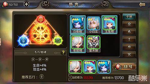 阵营栏下面还有推荐的修为数,也就是总战斗力,如果战斗力不足,推荐玩家先提高修完,然后再战,不然……可能会败得很惨哟!