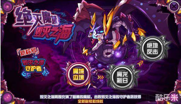 绝灭魔龙这个挑战分为三个部分:魔域边境、魔龙蔽日、绝地反击。完成三个关卡可以获得新称号“毁灭之海守护者”,这个称号就只有成就20点,没有属性加成了哦!