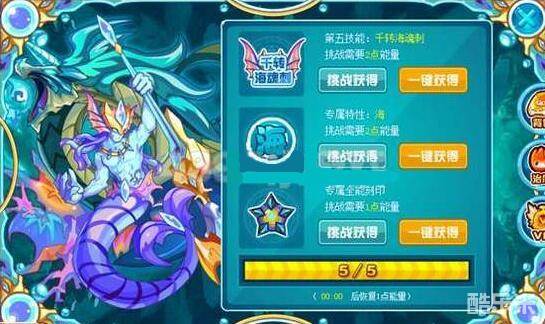 ②每五分钟会自动恢复一点能量值,能量值用于挑战三件套的对应BOSS;