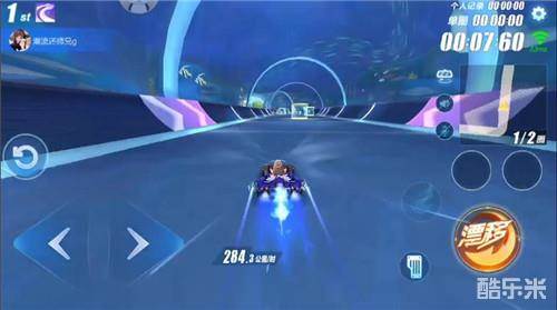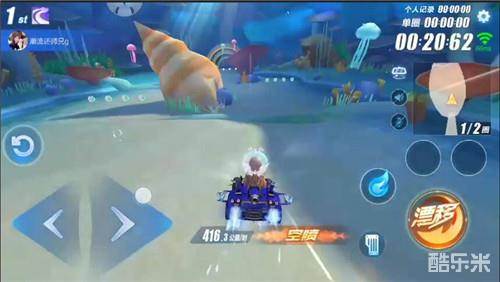 位置领先的玩家建议走中路,节约比赛时间。排名靠后的玩家可走右侧赛道获得道具及小喷加速,但由于赛车速度较快,走右侧时要注意往左侧拉车头避免撞墙。