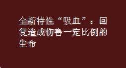 点评:很明显这是一个偏向于PVE的特性,一些常用来打BOSS或是爆攻翻倍输出爆炸而又缺少攻击技能回血的精灵首选,可以通过技能本身造成伤害的同时恢复自身体力以达到多次输出,值得注意的是吸的血量为粉色回血,PVE有效。