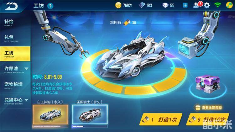 白玉神驹可以通过赛车工坊获得。在赛车工坊中消耗橙光能源可以对赛车进行打造,当打造满10格时即可领取白玉神驹的永久使用权。