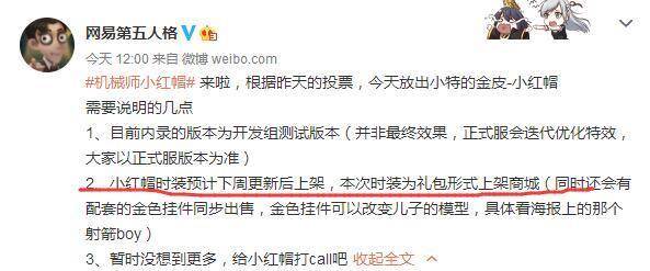 相信很多人都囤积了大量的碎片准备入手了,不过官方爆料称将会以礼包的形式出现在商城中,也就是说不能单买?这个消息估计会让一群期盼已久的玩家感到失望呀,同时小编还发现,在小红帽之后,可能官方还会推出一款慈善家的金色皮肤哦,只是目前还未曝光,具体将会是什么样子,还需要时间等待。