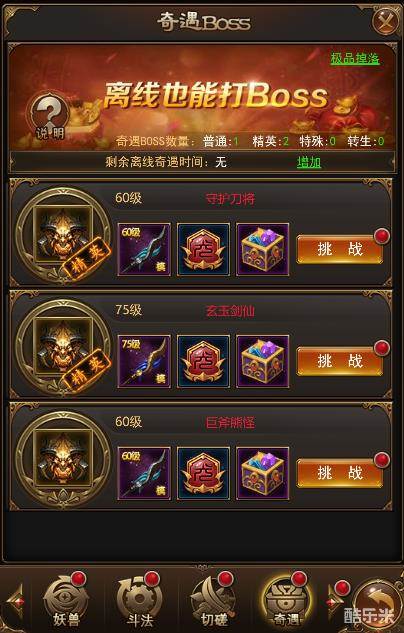 2)离线的时候,会自动击杀奇遇boss,获得相应的奖励;