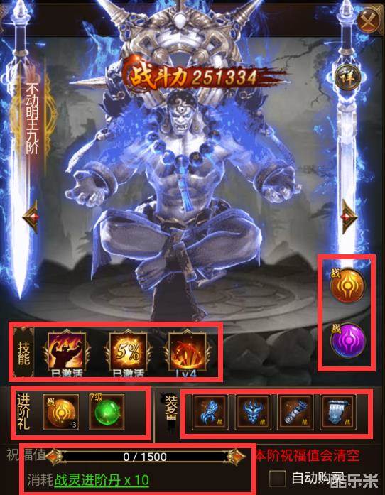 战灵装备:阶数越高可开启的装备栏就越多,最多开启4个装备栏,装备可以为战灵添加大量的属性