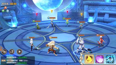 竞技场为4V4战斗,攻守双方各上阵4个星灵。战斗模式和关卡相似,只是攻击目标从系统怪物变成了玩家星灵的镜像。