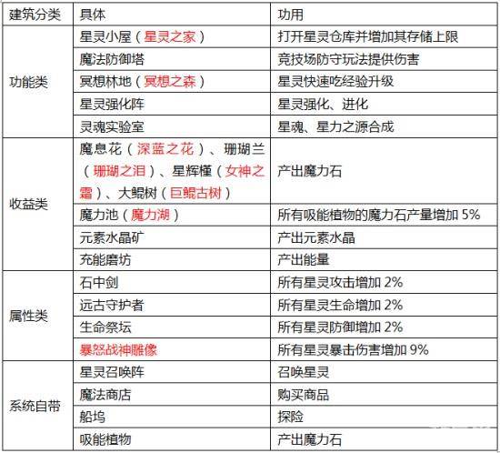 部分建筑影响其它建筑的效果,比如魔力池(魔力湖);属性类建筑效果叠加。