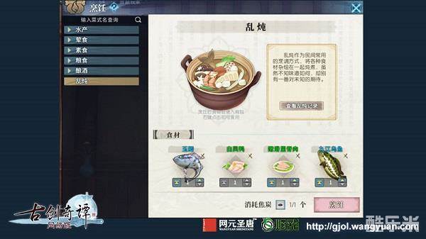 烹饪则是通过领悟食谱,将收集的材料放在灶台上烹煮,从而做出:水产、荤食、素食、粮食、酿酒等食物。不同的食谱,不同食材,做出的美食也各不相同,吃下食物可增加角色的饱食度。值得注意的是,在“乱炖”里面,背包里的食材都可以拿来炖,做出的美食一样很美味。