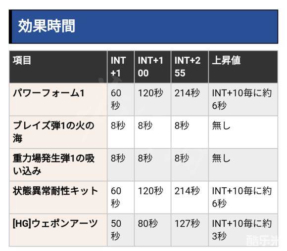 第四个:工具里面的状态异常耐性,和buff效果同样每增加10点INT可以增加6s的持续时间。