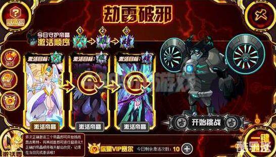 这关有赛尔用月神·狄安娜过去了~但是子乐没有月神,只能用利刃之主鲁斯王瞬杀了!开场还是不消强,直接海王之罚回血并且让双防增加。如果青帝强化及时消强,如果被控场及时补血。这关会慢一点,因为属性被克制的关系,只能等血量足够的时候才能打,需要一定的耐心。