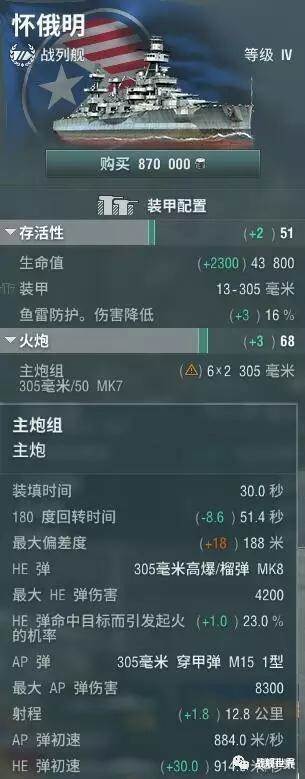 美国线的“怀俄明”号战列舰,主炮为“305毫米/50 MK7”。其意义是:“MK7型舰炮,口径305毫米,身管长50倍径”。