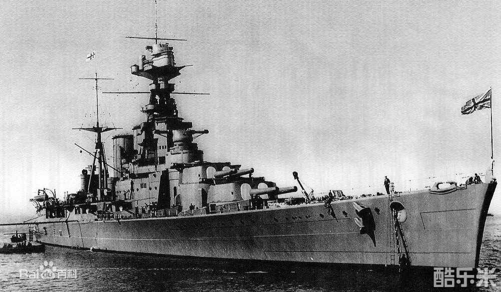英国舰队齐射,距离18000+米。胡德号中后部甲板被命中一弹,起火并引起防空弹药爆炸。火势有利于德军校正弹着。