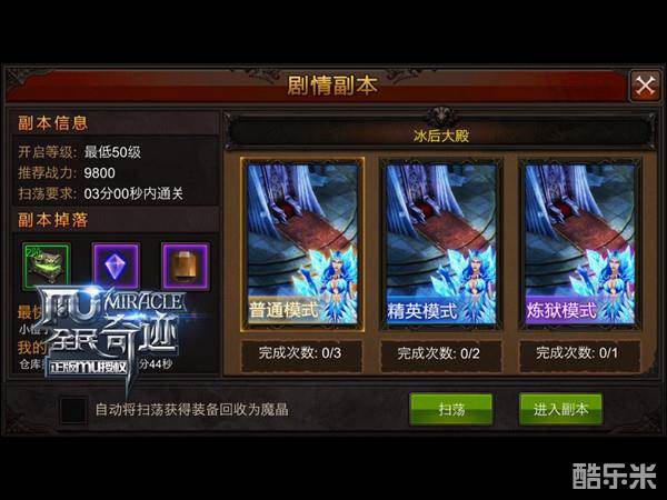 接受冰雪与战火的考验,释放被魔化与囚禁的灵魂,在巍峨的冰后大殿中吹响独行勇士的寂寞战歌!用我们手中的武器,驱逐魔族,还冰原一个宁静,还MU大陆一个和平!
