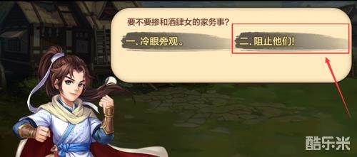 接下去你会通过师傅路人甲路人乙的指引,然后驮了个醉汉下山,重要选择来了!