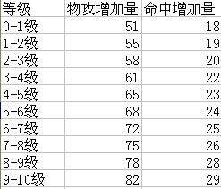 等级;魔攻增量;命中增量