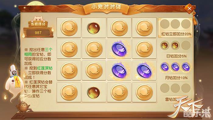 想学钟馗玩捉鬼?《天下》手游 “小鬼对对碰”玩法,等的就是拥有“最强大脑”的你!开始游戏前牢牢记住每只小鬼的坐标,翻开卡牌将相同小鬼来个“对对碰”,就可顺利捉回地府啦!少侠可要小心,若不快速及时捉住,调皮的小鬼可是会满场乱跑的哟,考验记忆力与眼里的时刻到啦!想拥有雷音溟钻与捉鬼大神限定称谓“指如疾风势如闪电”吗?那就快来《天下》手游“小鬼对对碰”玩法里当回钟馗玩捉鬼吧!