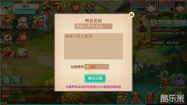 在《梦幻仙语》中,人物等级达到25级,即可创建帮会。创建帮会需要500元宝,但是创建成功之后即可获得60000银锭的帮会创建鼓励基金哦~