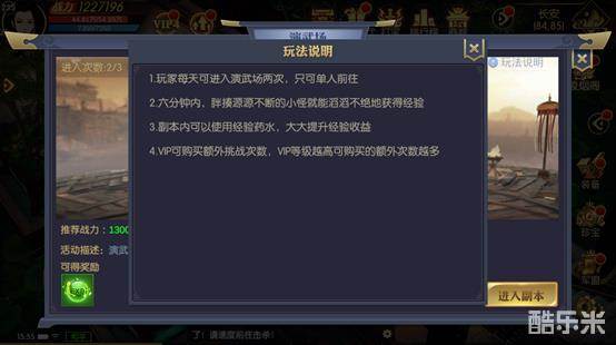 1、 玩家每天可免费进入演武场两次,只可单人前往