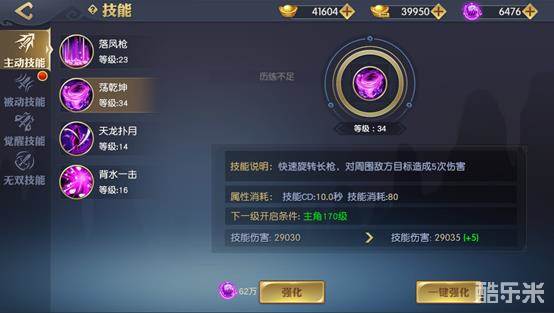技能:荡乾坤:快速旋转长枪,对周围地方目标造成5次伤害,AOE伤害十足。