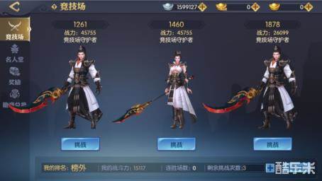 每天有3次机会在竞技场进行挑战,额外挑战次数需要花费元宝,玩家可根据自身战力选择挑战的对象哦。同时,竞技场也有丰厚的奖励呢。