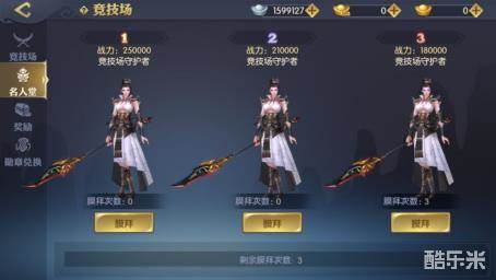 竞技场排名前三的可受到其他玩家的膜拜呢,千万不要错过这份荣耀哦。