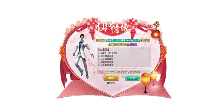 1) 玩家确认求婚后,系统进行全服广播“喜讯!恭喜s1.男性玩家名与s1.女性玩家名成为本服第xx对神仙眷侣,修炼之路携手相伴”