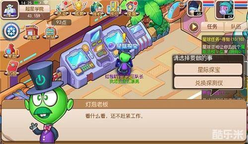 参加以后我们会被传送到超星学院的灯泡老板这里,并且点击星际探宝就可以开始探宝之旅了!