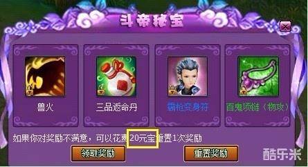 3. 如果对获得的奖励不满意,可以花费20元宝重置奖励。