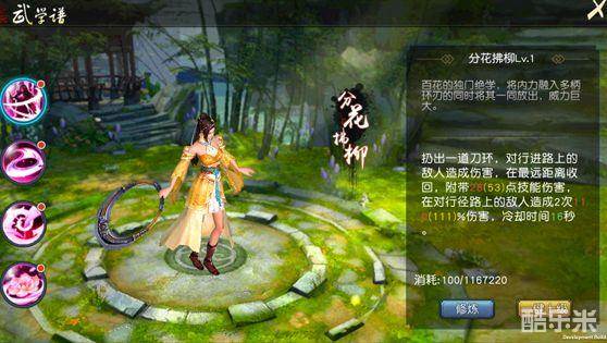 分花拂柳:扔出一道刀环,对行进路上的敌人造成伤害,在最远距离收回,在对行径路上的敌人造成2次伤害。