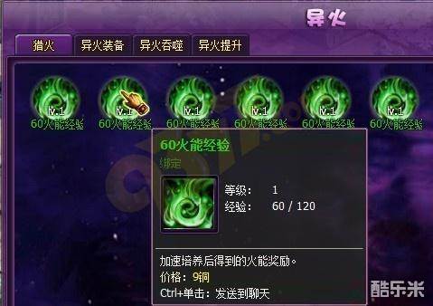 而收获的火能会存放于异火界面中,玩家的异火可以通过吞噬火能来增加经验