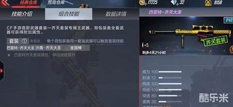 巴雷特齐天大圣这把狙击枪是黑炮的改进加强版,枪身覆盖着大量的金色鱼尾纹,看上去十分威武,并且是齐天套装的主武器。装备齐天大圣三件套可以激活套装属性提升角色移动速度。
