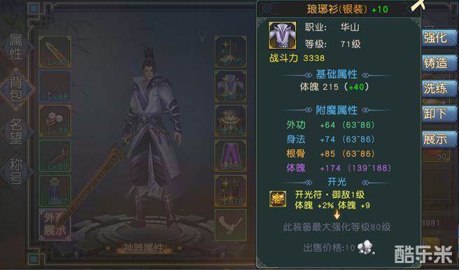 3.花费少量碎银和一个开光符即可对装备进行开光操作。