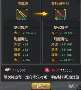 4.铸造装备需要特殊材料以及熔炼值,根据部位不同,需要消耗不同的特殊材料,仙柏木或月华石。