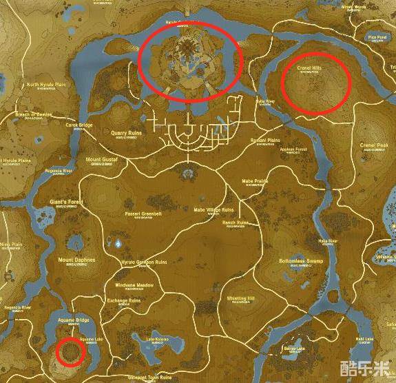 1. 中上红圈-城堡:综合武器库,海拉尔盾获得(地牢最里面的一个大房间)。