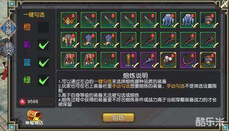 4.熔炼可通过一键勾选功能选择熔炼指定品质的所有背包内装备。