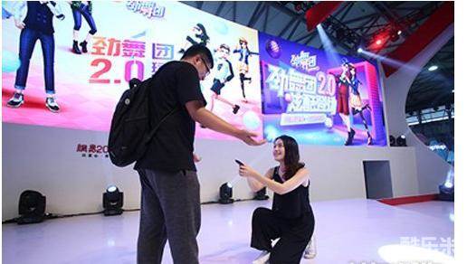 是日《劲舞团》手游的展台十分热闹,现场玩家试玩场面火热。猝不及防,一位年轻漂亮的玩家在《劲舞团》手游舞台上对着男友扑通跪下。她手持求婚礼物宝马车匙,对着男友大喊:“娶了我吧!宝马和房子我都买好了!只求你跟我结婚!”其男友久久没有回应,女玩家下跪大概五分钟后,方才接受。