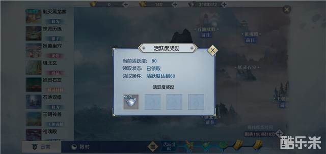 活跃度达到30的时候,可以领取300个固命酒,说固命酒大家可能不知道是什么东西,简单来说就是血药,300个固命酒可以为大家节省很多购买血药的开支,在打本或是挂机刷怪的时候,再也不用担心血药不够用了。