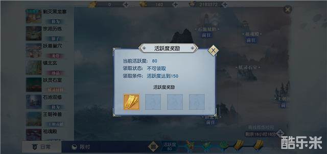 很多日常活动都需要大家达到一定的等级之后才会解锁,所以大家首先要做的,就是抓紧时间提升自己的等级,否则能做的活动太少,即使全部做完,也很难达到150点活跃度。任何资源都讲究积少成多,貂爷相信大家每个人都有这样的毅力,早日踏入祖境。