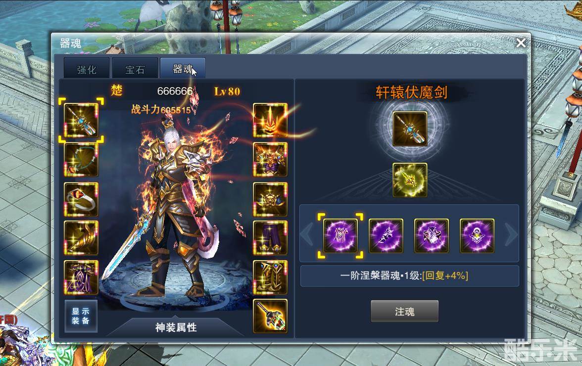 (2)器魂注魂已提升器魂等级,界面如下:
